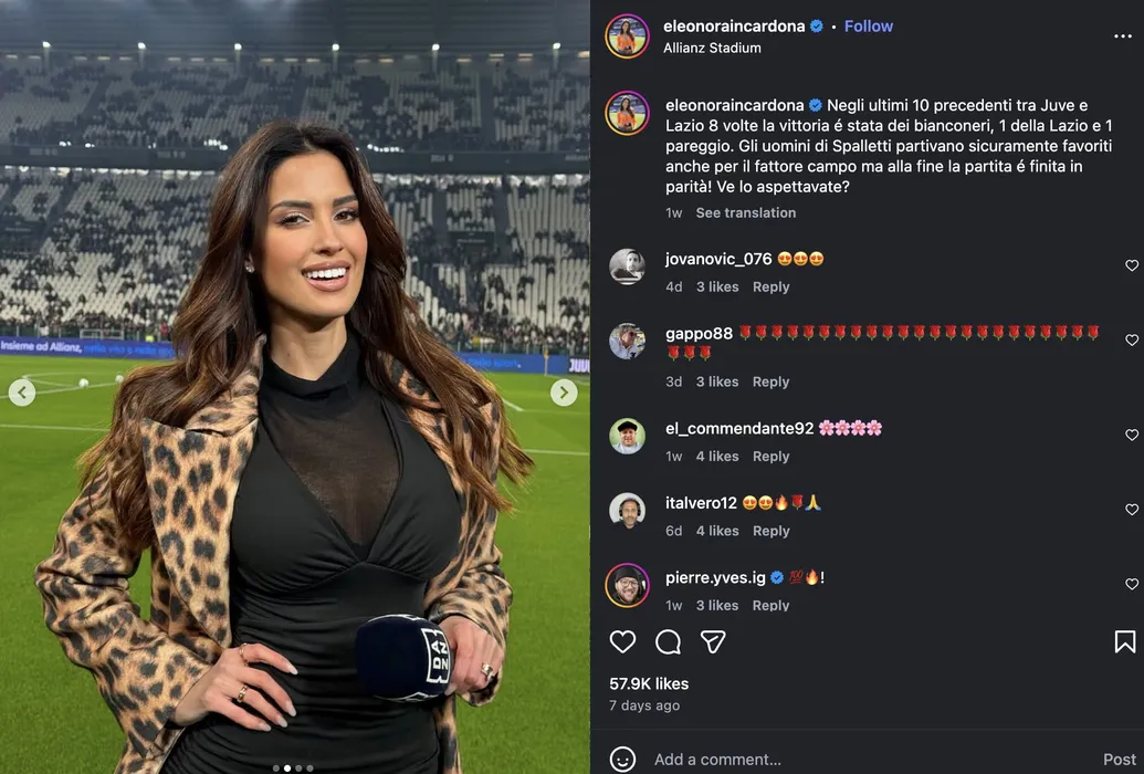Eleonora a atras toate privirile la Inter – Juventus. Peste 40.000 de aprecieri pentru frumoasa jurnalistă