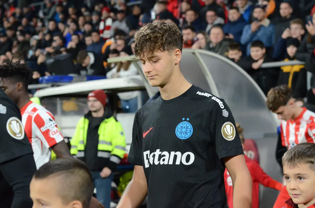 Andrei Dancus la startul meciului de fotbal dintre UTA Arad si FCSB, contand pentru Cupa Romaniei Betano, desfasurat pe Arena Francisc Neuman din Arad, miercuri 3 decembrie 2025. © FOTO:Alexandra Cristina Grigorescu/SPORT PICTURES
