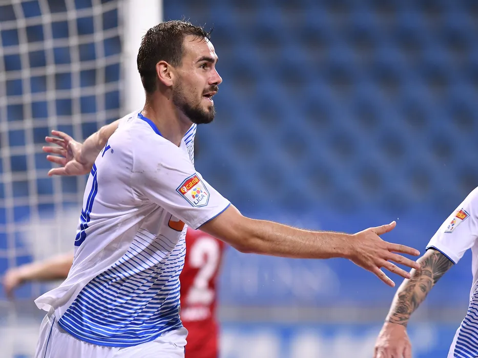 Elvir Koljic se bucura dupa un gol marcat in meciul de fotbal dintre Universitatea Craiova si FC Botosani, contand pentru play-off-ul Ligii 1 Casa Pariurilor, disputat fara spectatori pe Stadionul Ion Oblemenco din Craiova, marti 23 iunie 2020. © FOTO:Razvan Pasarica/SPORT PICTURES