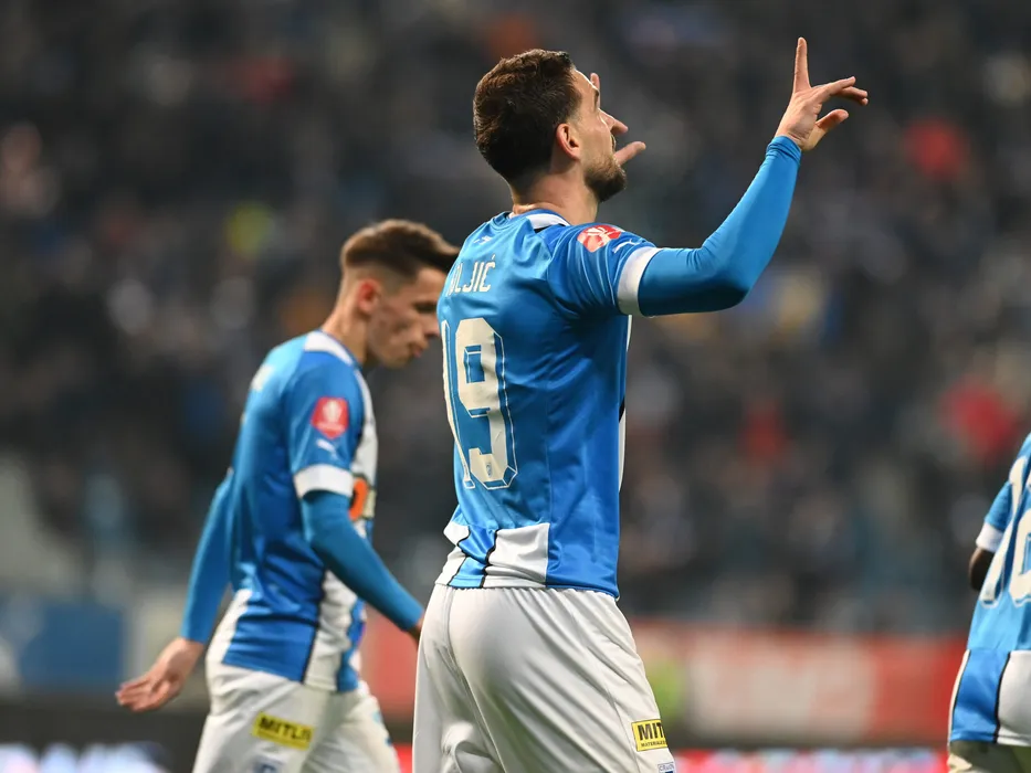 Elvir Koljic se bucura dupa un gol marcat in meciul de fotbal dintre Universitatea Craiova si UTA Arad, contand pentru Superliga Superbet, desfasurat pe Stadionul Ion Oblemenco din Craiova, vineri 10 martie 2023. © FOTO:Razvan Pasarica/SPORT PICTURES
