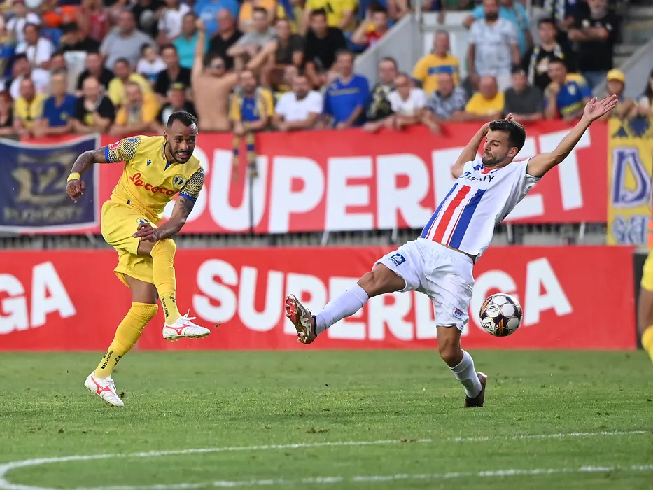 Jair Tavares Silva si Frederic Ferreira Maciel in meciul de fotbal dintre Petrolul Ploiesti si Otelul Galati, din cadrul Superligii Superbet, desfasurat pe Stadionul Ilie Oana din Ploiesti, vineri 1 septembrie 2023. © FOTO:Razvan Pasarica/SPORT PICTURES