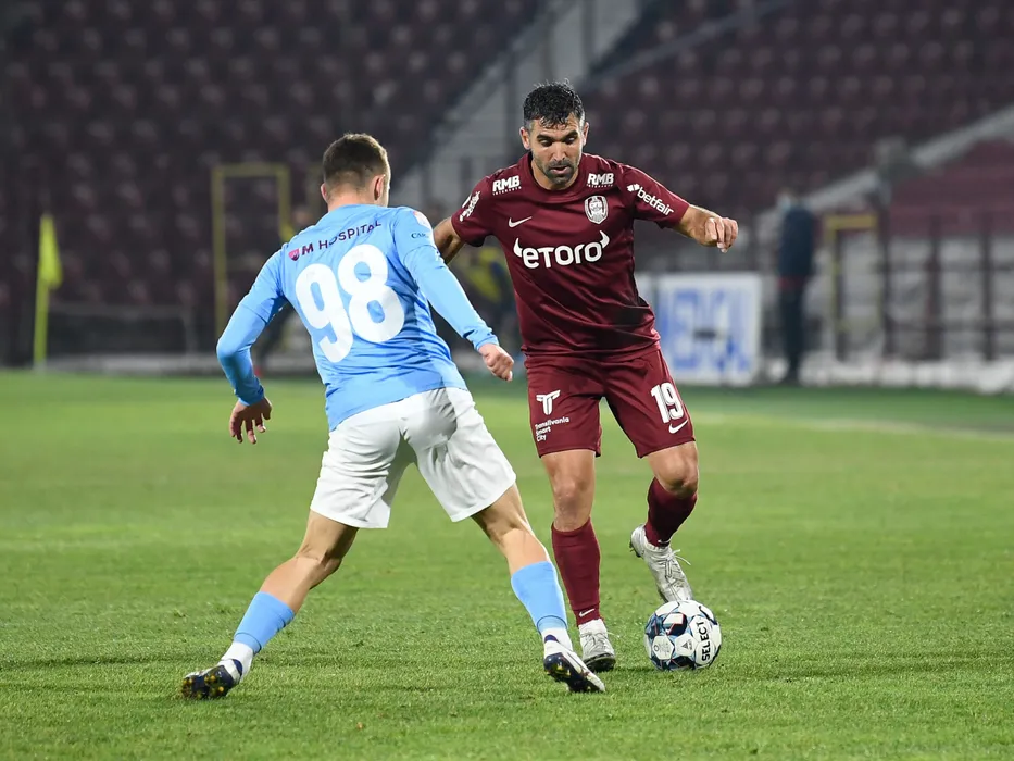Emmanuel Culio si Cristian Ionut Costin in meciul de fotbal dintre CFR Cluj si FC Voluntari, contand pentru Liga 1 Casa Pariurilor, desfasurat fara spectatori pe Stadionul Dr. Constantin Radulescu din Cluj Napoca, sambata 30 octombrie 2021. © FOTO:Flaviu Buboi/SPORT PICTURES