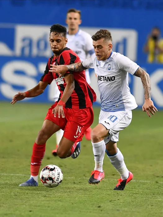 Raoul Baicu si Alexandru Cicaldau in meciul de fotbal dintre Universitatea Craiova si Astra Giurgiu, contand pentru play-off-ul Ligii 1 Casa Pariurilor, disputat fara spectatori pe Stadionul Ion Oblemenco din Craiova, vineri 19 iunie 2020. © FOTO:Razvan Pasarica/SPORT PICTURES