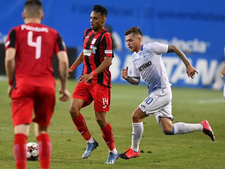 Raoul Baicu si Alexandru Cicaldau in meciul de fotbal dintre Universitatea Craiova si Astra Giurgiu, contand pentru play-off-ul Ligii 1 Casa Pariurilor, disputat fara spectatori pe Stadionul Ion Oblemenco din Craiova, vineri 19 iunie 2020. © FOTO:Razvan Pasarica/SPORT PICTURES
