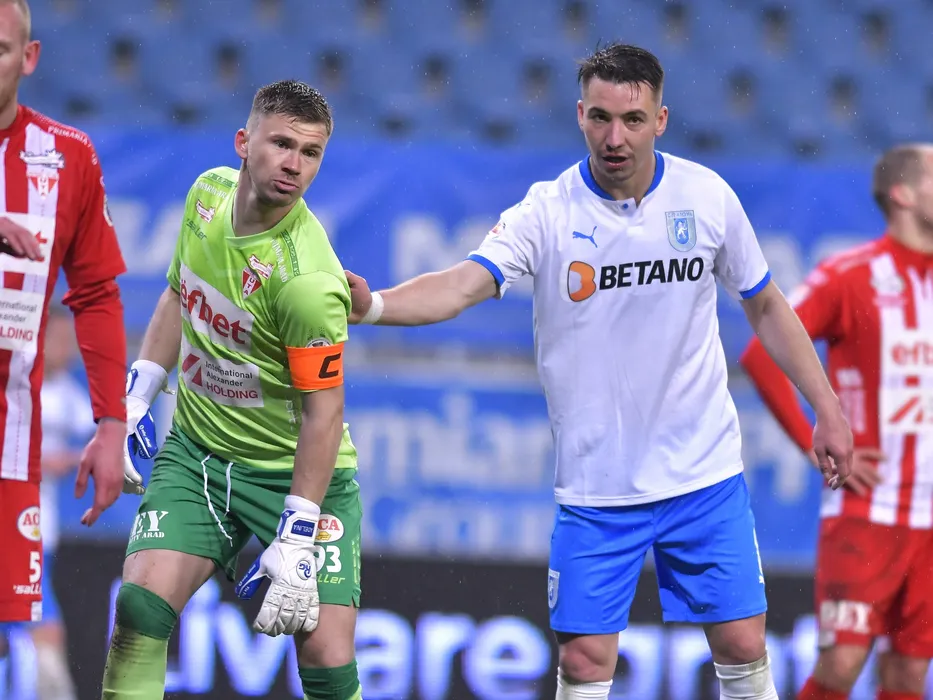 Florin Iacob si Alexandru Mateiu discuta in meciul de fotbal dintre Universitatea Craiova si UTA Arad, contand pentru Liga 1 Casa Pariurilor, desfasurat fara spectatori pe Stadionul Ion Oblemenco din Craiova, marti 16 martie 2021. © FOTO:Razvan Pasarica/SPORT PICTURES