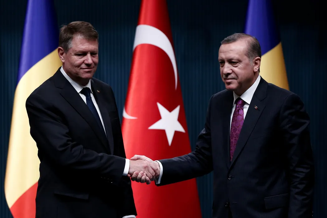 ANKARA, TURKEY - MARCH 23: Romanian President Klaus Werner Iohannis (L) and Turkish President Recep Tayyip Erdogan (R) shake hands after they held a joint press conference following their official meeting at the Presidential Complex in Ankara, Turkey on March 23, 2016. Aykut Unlupinar / Anadolu Agency