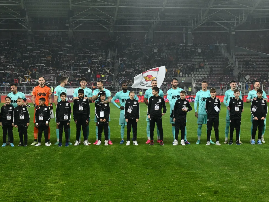 Fotbalistii clujeni la startul meciului de fotbal dintre Rapid Bucuresti si CFR Cluj, din cadrul Cupei Romaniei Betano, desfasurat pe Superbet Arena-Giulesti din Bucuresti, miercuri 6 decembrie 2023. © FOTO:Razvan Pasarica/SPORT PICTURES