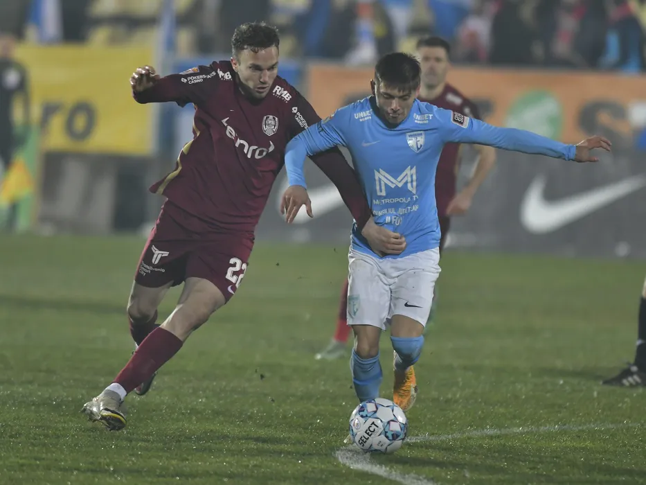 Gabriel Debeljuh si Ion Gheorghe in meciul de fotbal dintre FC Voluntari si CFR Cluj, contand pentru Liga 1 Casa Pariurilor, desfasurat pe Stadionul Anghel Iordanescu din Voluntari, miercuri 2 martie 2022. © FOTO:Razvan Pasarica/SPORT PICTURES