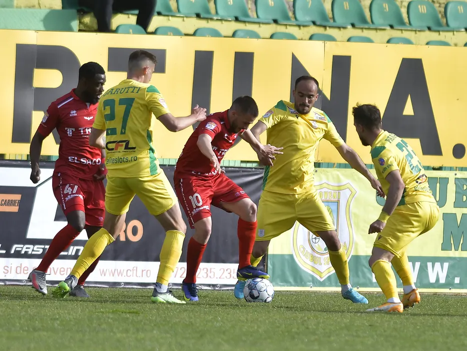 Christopher Braun, Valentin Cosereanu si Andrei Costin Tircoveanu in meciul de fotbal dintre CS Mioveni si FC Botosani, contand pentru Play-out-ul Ligii 1 Casa Pariurilor, desfasurat pe Stadionul Orasenesc din Mioveni, luni 2 mai 2022. © FOTO:Razvan Pasarica/SPORT PICTURES