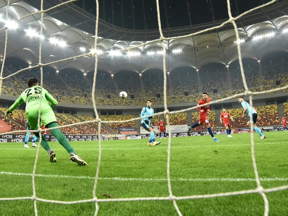 Faza golului marcat de catre Darius Dumitru Olaru in meciul de fotbal dintre FCSB si Chindia Targoviste, contand pentru Liga 1 Casa Pariurilor, desfasurat fara spectatori pe Arena Nationala din Bucuresti, sambata 20 februarie 2021. © FOTO:Razvan Pasarica/SPORT PICTURES