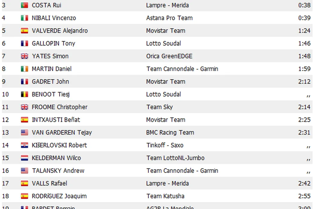 Etapă uluitoare în Dauphine. Rui Costa a câștigat dintr-o evadare formată din lideri de echipă: Nibali e noul tricou galben, după ce ieri pierduse două minute