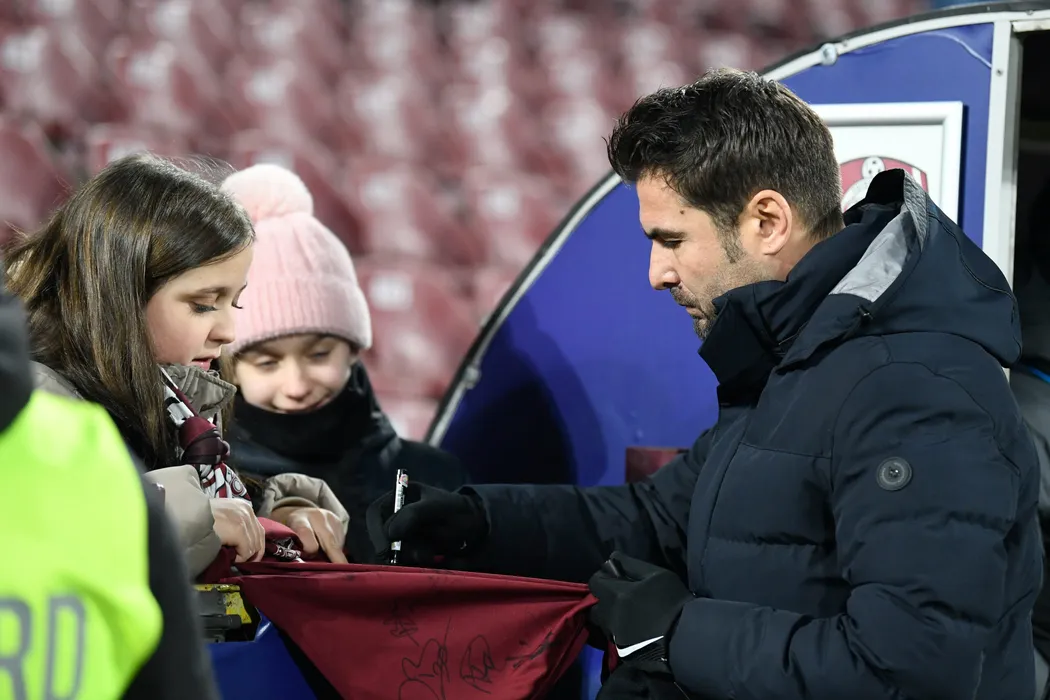 Adrian Mutu dând un autograf la startul meciului de fotbal dintre FC CFR 1907 Cluj SA si SC FC Voluntari SA, contând pentru Superliga Superbet, desfășurat pe Stadionul Dr.Constantin Rădulescu din Cluj-Napoca, luni 29 ianuarie 2024. © FOTO: Flaviu BUBOI/SPORT PICTURES