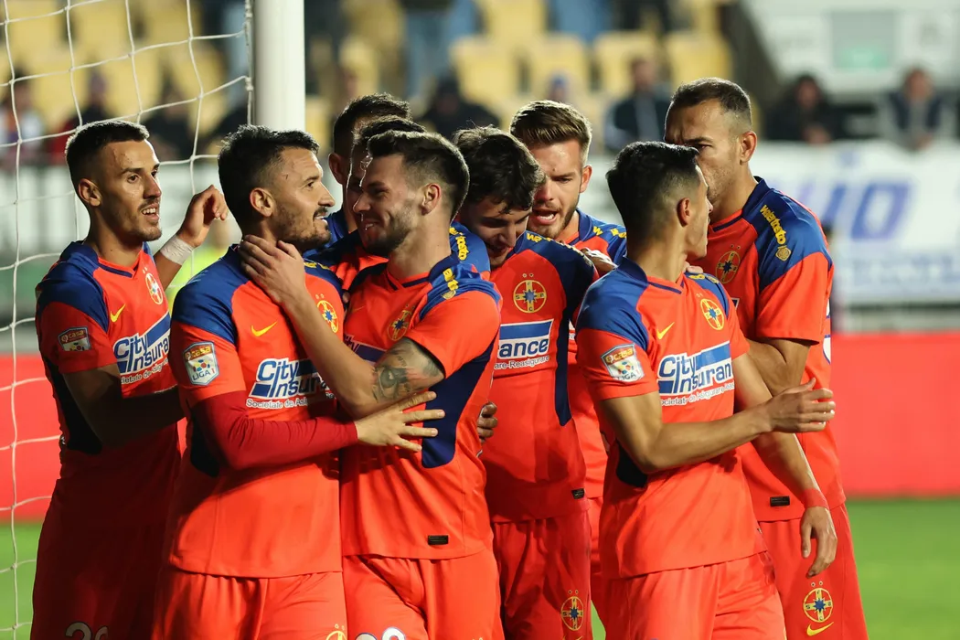 Echipele Chindia Targoviste (echipament albastru) si FCSB s-au intalnit intr-o partida disputata in etapa 11 din Liga 1 de fotbal, vineri, 1 octombrie 2021, la Targoviste. GEORGE FLUSTER / MEDIAFAX FOTO