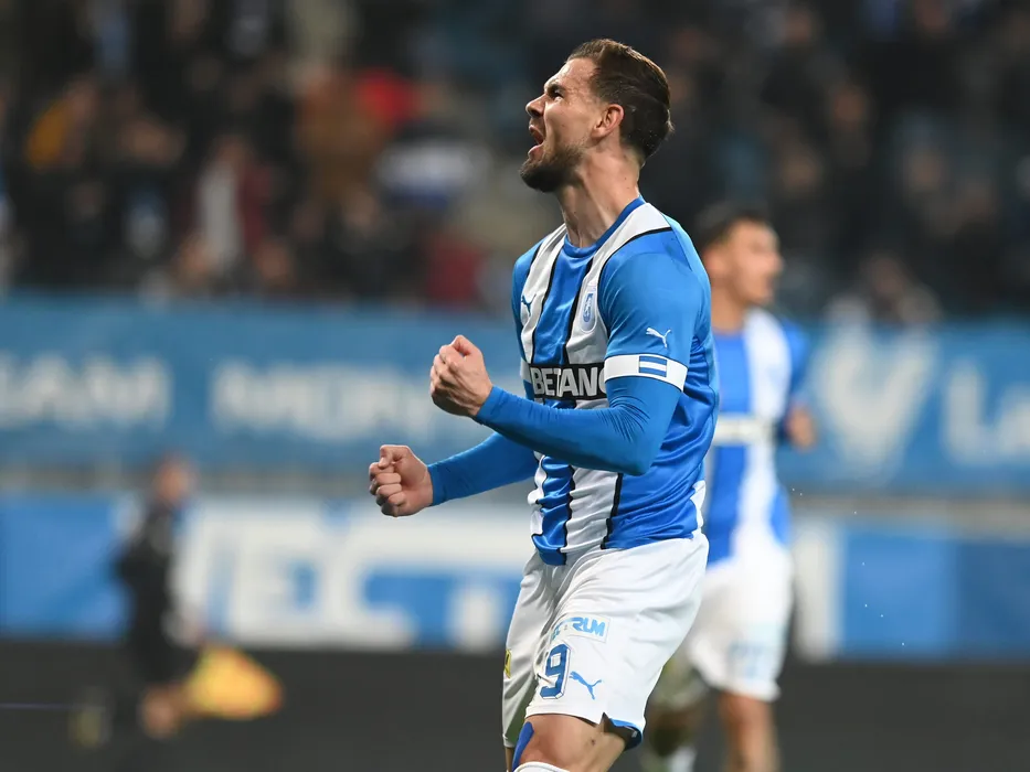 Elvir Koljic se bucura dupa un gol marcat in meciul de fotbal dintre Universitatea Craiova si UTA Arad, contand pentru Superliga Superbet, desfasurat pe Stadionul Ion Oblemenco din Craiova, vineri 10 martie 2023. © FOTO:Razvan Pasarica/SPORT PICTURES