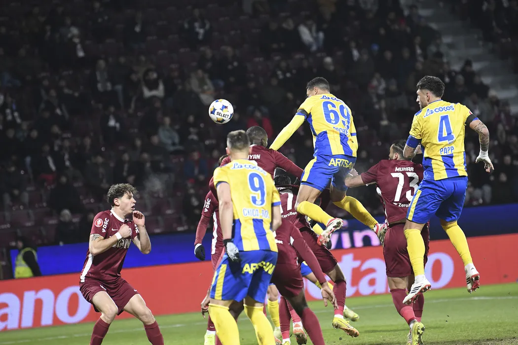 Matei Christian Ilie, Cedric Benjamin Roche Yohan, Paul Papp in meciul de fotbal dintre FC CFR 1907 Cluj si FC Petrolul Ploiesti, contand pentru Superliga Superbet, desfasurat pe Stadionul Dr.Constantin Radulescu din Cluj-Napoca, sambata 21 februarie 2026. © FOTO:Flaviu Buboi/SPORT PICTURES