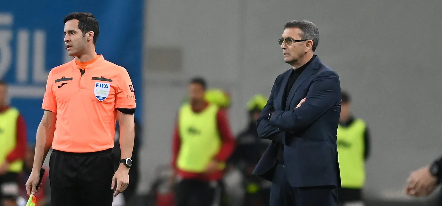 Arbitrul asistent Mircea Mihail Grigoriu alaturi de Eugen Neagoe in meciul de fotbal dintre Universitatea Craiova si Universitatea Cluj, contand pentru Superliga Superbet, desfasurat pe Stadionul Ion Oblemenco din Craiova, sambata 5 noiembrie 2022. © FOTO:Razvan Pasarica/SPORT PICTURES