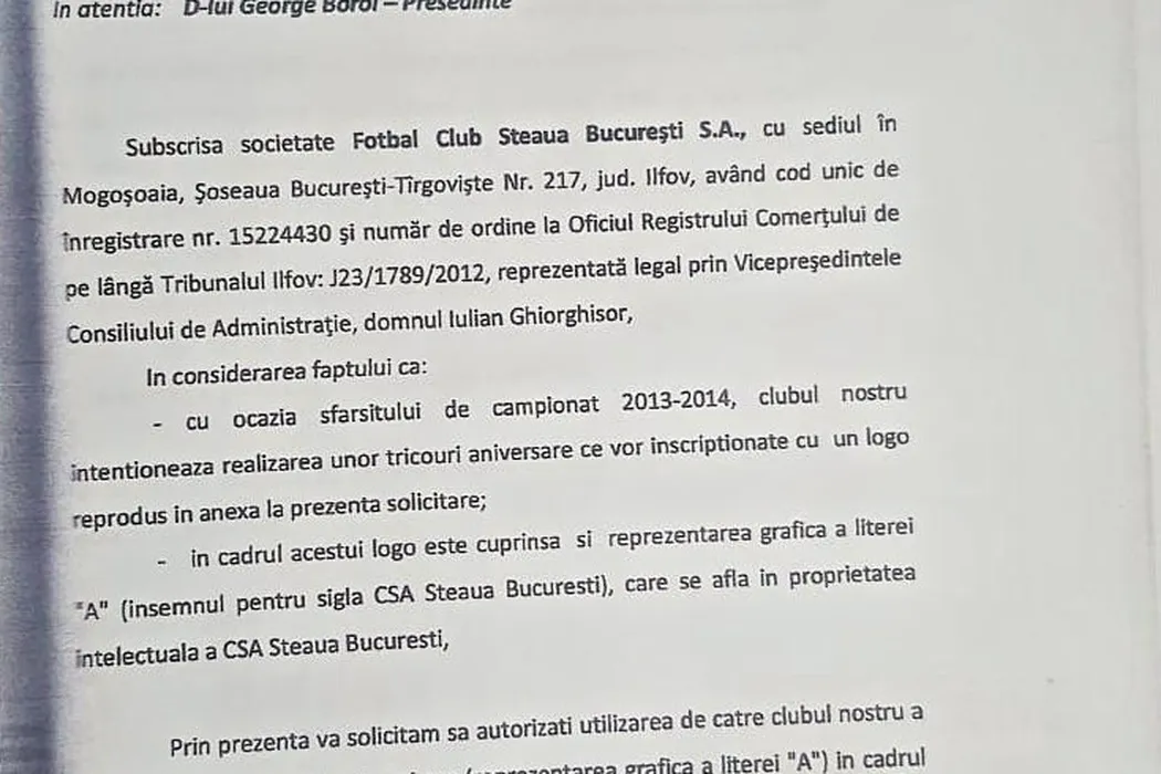 EXCLUSIV | Ce a depus Talpan la dosarul procesului pentru palmares dintre Steaua și FCSB. Cum arată cererea trimisă Armatei de FC FCSB în 2014 și răspunsul primit | DOCUMENTE