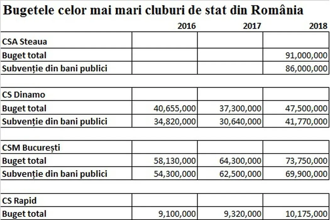 EXCLUSIV | CSA Steaua, CS Dinamo, CSM București și CS Rapid au primit de la stat aproape 210.000.000 de lei în 2018. Împreună, au câștigat un singur titlu mondial în probă olimpică și zero cupe europene intercluburi | CIFRE + GRAFICE
