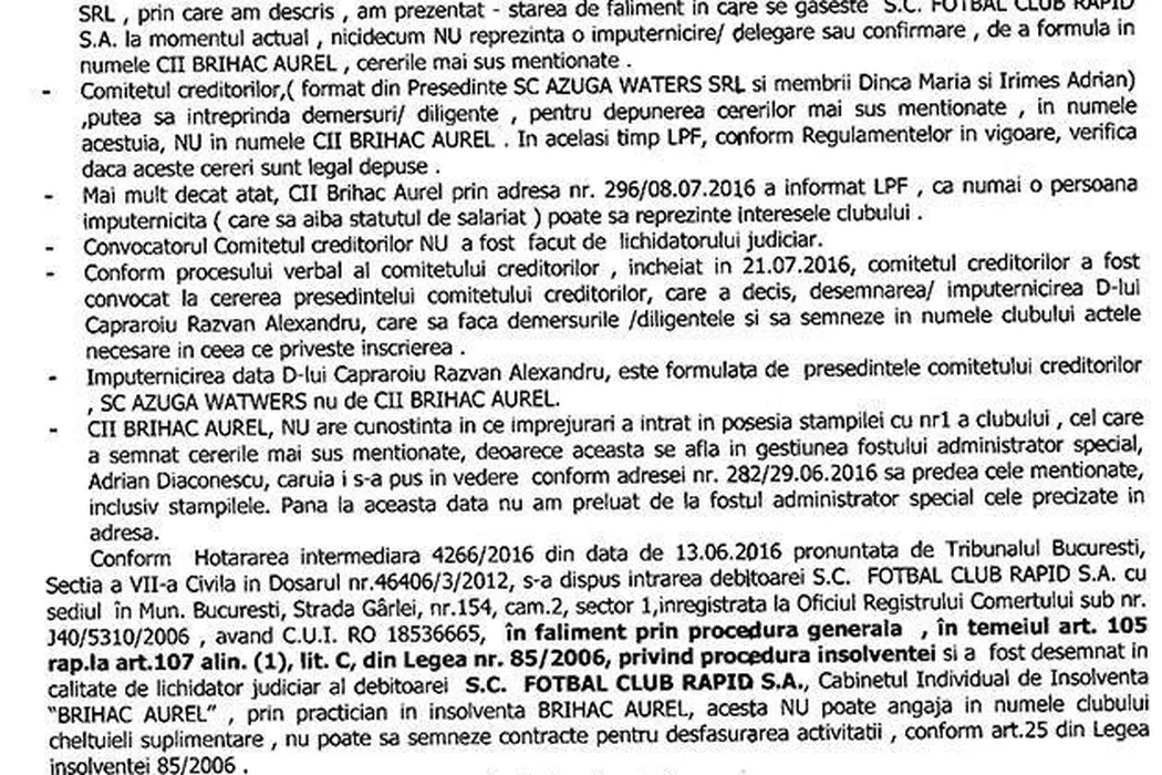EXCLUSIV Document: adresa oficială prin care lichidatorul judiciar al Rapidului notifică FRF și LPF că actele depuse pentru înscrierea clubului sunt nule. Cazul merge în penal: „Este fals în înscrisuri”