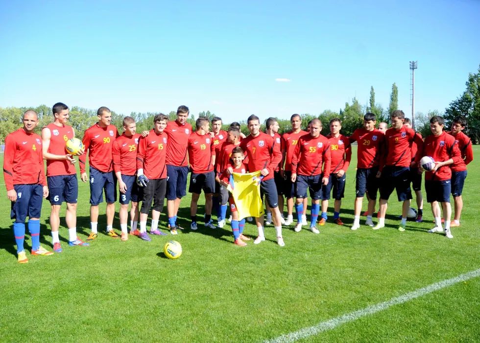 Marius Ciobanu pozeaza alaturi de fotbalistii stelisti.