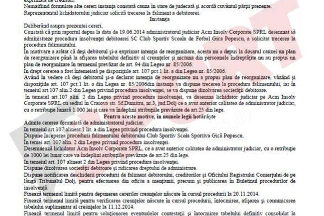 EXCLUSIV | Gică Popescu a dat faliment. Școala de fotbal a fostului internațional a fost lichidată de tribunal