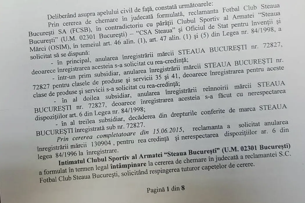 EXCLUSIV | Încă o „victorie” pentru Becali: Curtea de Apel respinge ca nefondată cererea FC FCSB de a anula brandul Steaua deținut de Armată și îi dă câștig de cauză lui Talpan. În premieră, instanța numește marca Steaua a MApN ca fiind „națională”