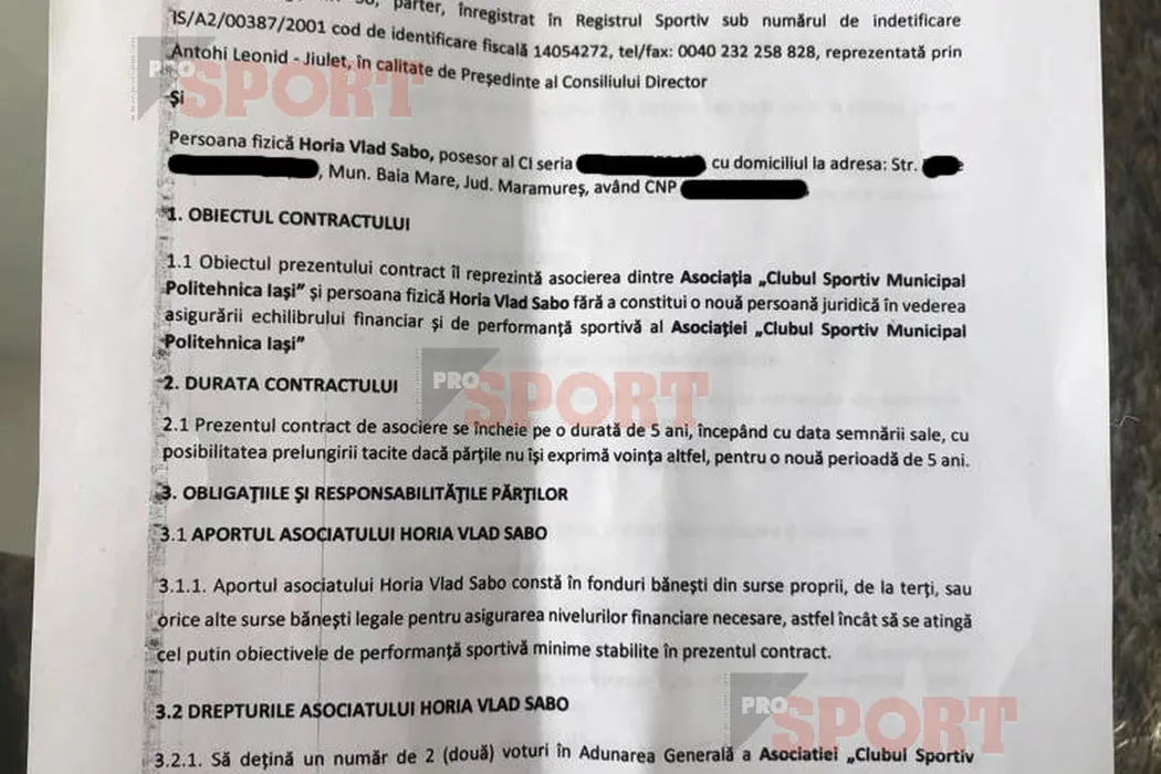 EXCLUSIV | Politehnica Iași e legată de Horia Sabo. Rezilierea unilaterală a contractului cu „finanțatorul” este interzisă | ACTUL de asociere