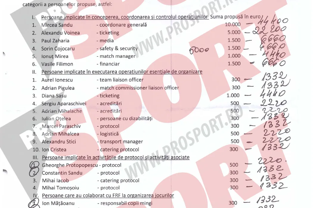 EXCLUSIV | Prime la FRF pentru ratarea calificării la Mondial. 36.000 de euro pentru angajați, la o zi după barajul cu Grecia. FOTO: Documentul oficial