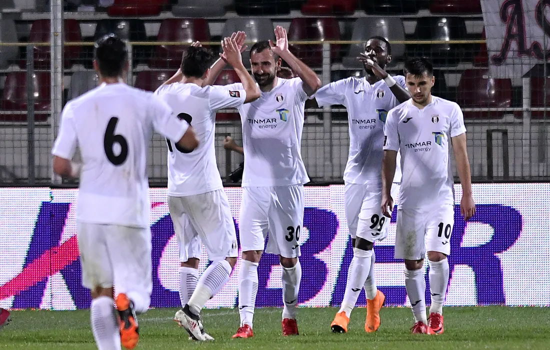 Bucurie a fotbalistilor de la Astra dupa golul marcat de Alexandru Dandea in meciul de fotbal dintre Astra Giurgiu si CSM Politehnica Iasi, din cadrul play off-ul Ligii 1 Betano, desfasurat pe Stadionul Marin Anastasovici din Giurgiu, luni 30 aprilie 2018. © FOTO Razvan Pasarica/SPORT PICTURES