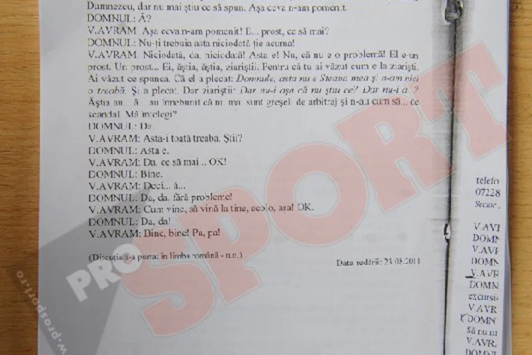 EXCLUSIV ProSport** îți prezintă toate stenogramele din dosarul ‘Mită pentru arbitri’! Avram către Borcea: „Plătești și colo și colo” / „Era vorba de baremuri”