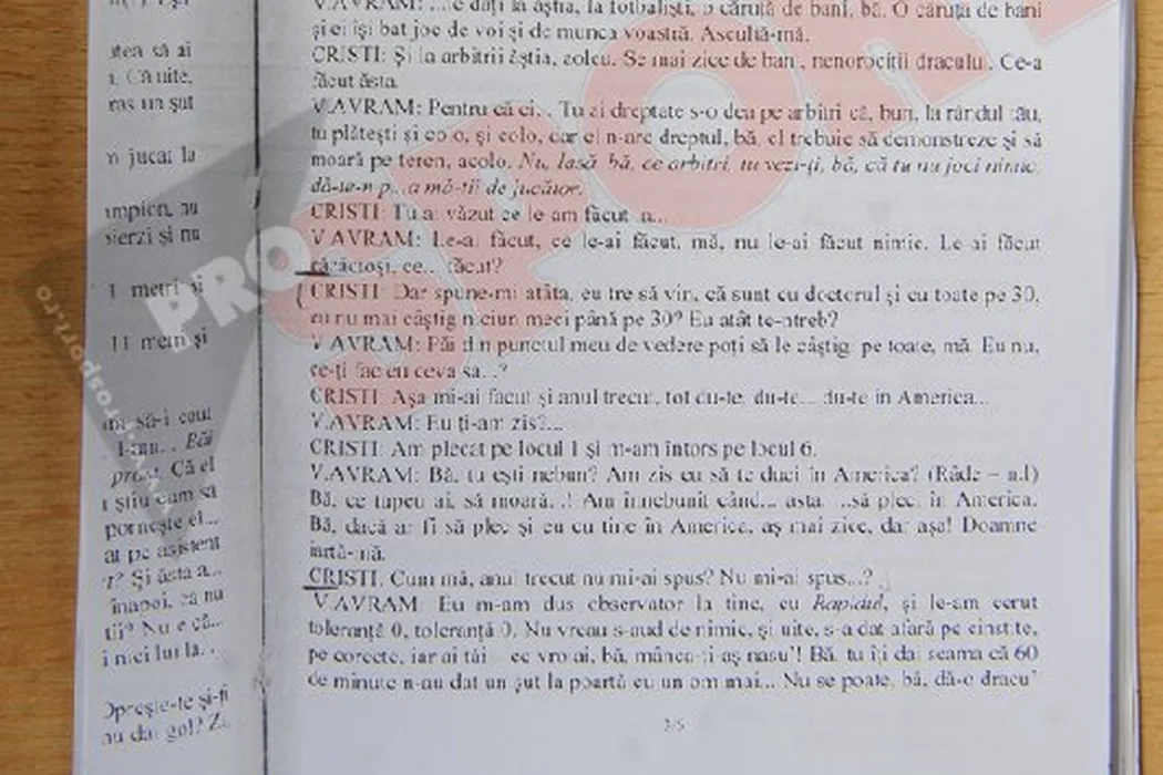 EXCLUSIV ProSport** îți prezintă toate stenogramele din dosarul ‘Mită pentru arbitri’! Avram către Borcea: „Plătești și colo și colo” / „Era vorba de baremuri”