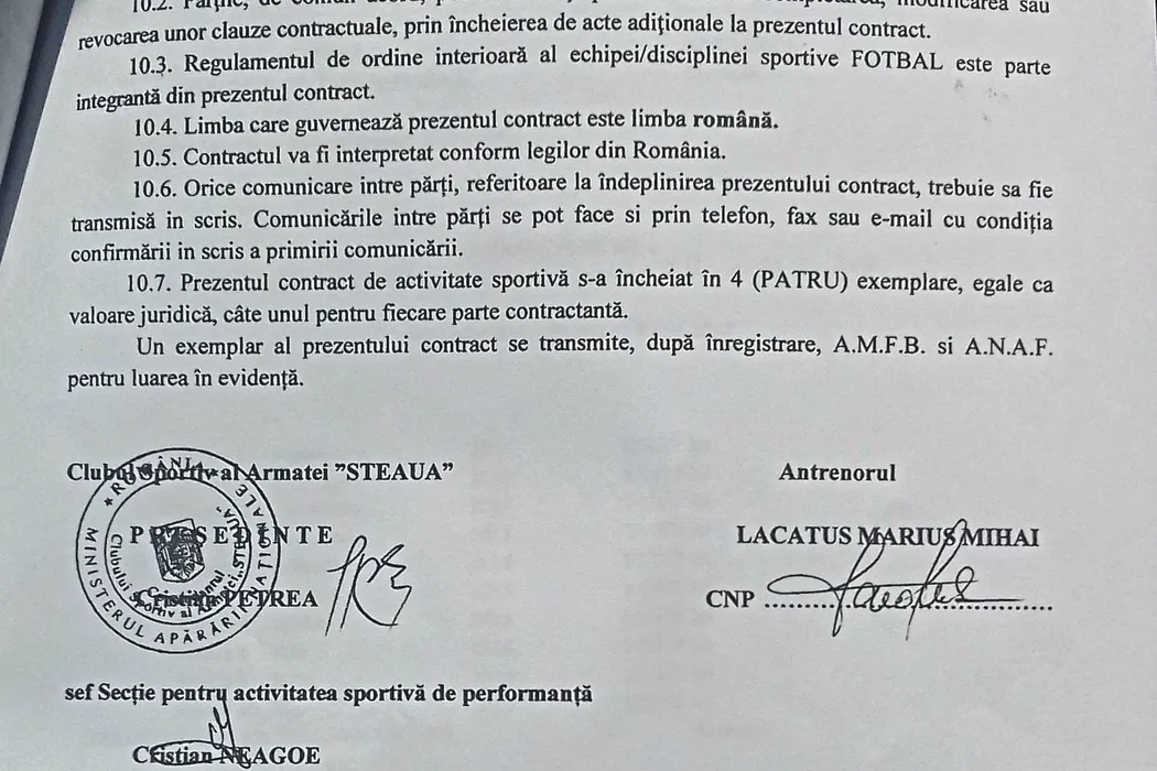 EXCLUSIV | Uimitorul contract al lui Lăcătuș la Steaua: clauza de promovare, înlocuită cu „obligația de a-și folosi capacitatea fizică și intelectuală” de luni până vineri, între orele 8-12 și 15-19. ACTE: salariul până în 2021 al legendarului fotbalist