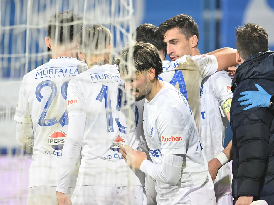 Ionuț Justinian Larie este felicitat de fotbalistii constanteni printre care Diogo Sa Ramalho dupa un gol marcat in meciul de fotbal dintre Farul Constanta si FC Botosani, contand pentru Superliga Superbet, desfasurat pe Stadionul central al Academiei Gheorghe Hagi din Ovidiu, vineri 7 noiembrie 2025. © FOTO:Razvan Pasarica/SPORT PICTURES