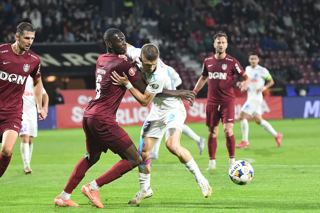 Florin Lucian Tanase si Sheriff Sinyan in meciul de fotbal dintre FC CFR 1907 Cluj si FCSB, contand pentru Superliga Superbet, desfasurat pe Stadionul Dr.Constantin Radulescu din Cluj-Napoca, duminica 31 august 2025. © FOTO:Flaviu Buboi/SPORT PICTURES