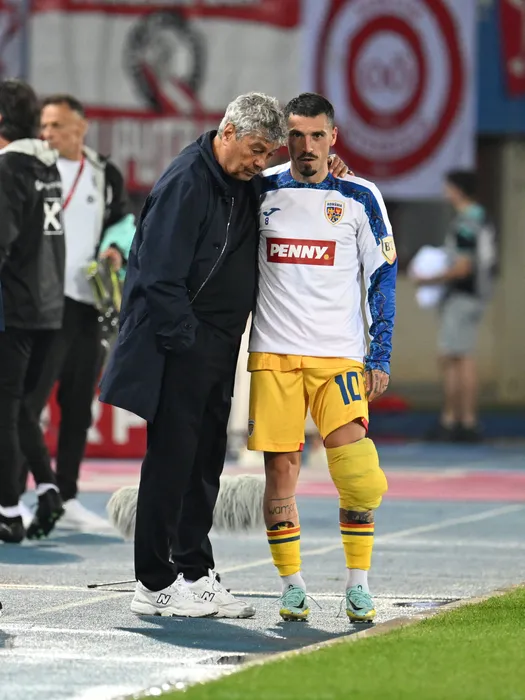 Mircea Lucescu discuta cu Nicolae Stanciu dupa meciul de fotbal dintre Austria si Romania, din cadrul Preliminariilor Campionatului Mondial 2026, desfasurat pe Stadionul Ernst Happel din Viena, sambata 7 iunie 2025. © FOTO:Razvan Pasarica/SPORT PICTURES