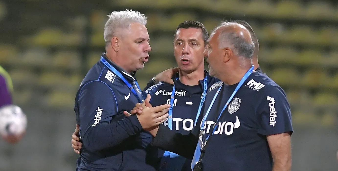 Marius Sumudica se bucura alaturi de Gabriel Margarit dupa meciul de fotbal dintre FC Arges si CFR Cluj, contand pentru Liga 1 Casa Pariurilor, desfasurat pe Stadionul Nicolae Dobrin din Pitesti, sambata 21 august 2021. © FOTO:Razvan Pasarica/SPORT PICTURES