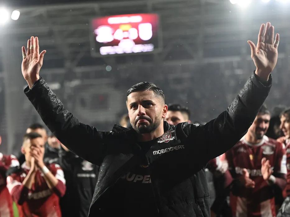 Horatiu Alexandru Moldovan multumeste galeriei rapidiste dupa meciul de fotbal dintre Rapid Bucuresti si FC U Craiova, din cadrul Superligii Superbet, desfasurat pe Superbet Arena-Giulesti din Bucuresti, vineri 19 ianuarie 2024. © FOTO:Razvan Pasarica/SPORT PICTURES