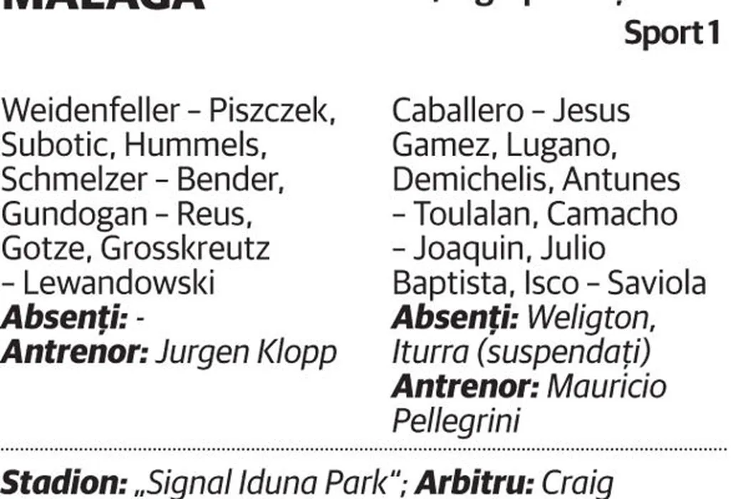 FABULOS** Borussia întoarce scorul cu două goluri marcate în prelungiri și se califică în semifinalele Ligii! Dortmund – Malaga 3-2