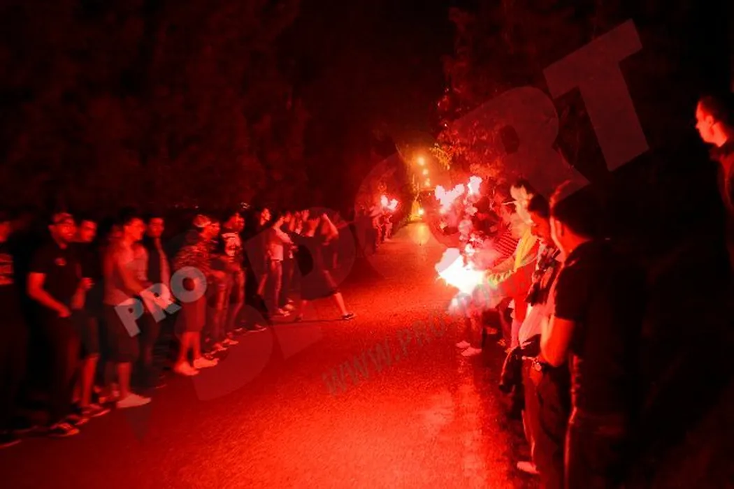 FABULOS! FOTO – Fanii Rapidului, exemplu de devotament total! Interziși pe stadion, ultrașii și-au luat revanșa față de jucători. Ce au făcut, în miez de noapte