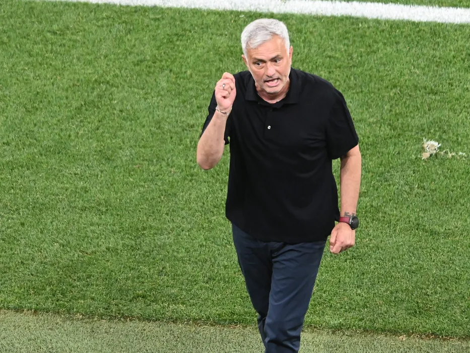 Jose Mourinho reactioneaza in meciul de fotbal dintre Sevilla FC si AS Roma, finala Europa League, desfasurata pe Ferenc Puskas Arena din Budapesta, miercuri 31 mai 2023. © FOTO:Razvan Pasarica/SPORT PICTURES