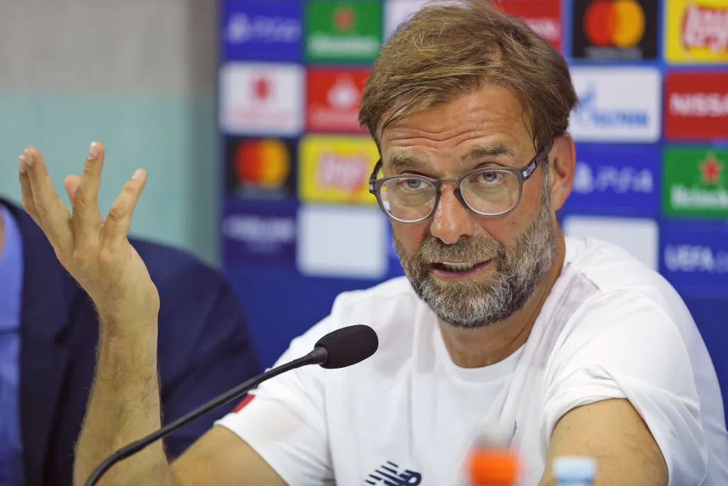 NAPOLI, ITALY - 2019/09/16: Liverpool coach, Jurgen Klopp, during the press conference at the San Paolo stadium, the day before the Champions League match, between Napoli and LIverpool. (Photo by Marco Cantile/LightRocket via Getty Images)