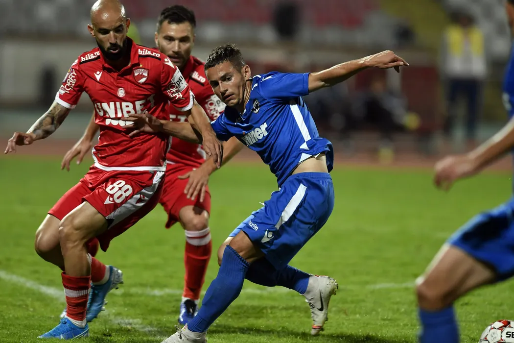 Gabriel Rodrigues De Moura si Alexandru Matan in meciul de fotbal dintre Dinamo Bucuresti si FC Voluntari, contand pentru Liga 1 Casa Pariurilor, desfasurat pe Stadionul Dinamo din Bucuresti, vineri 27 septembrie 2019. © FOTO:Razvan Pasarica/SPORT PICTURES
