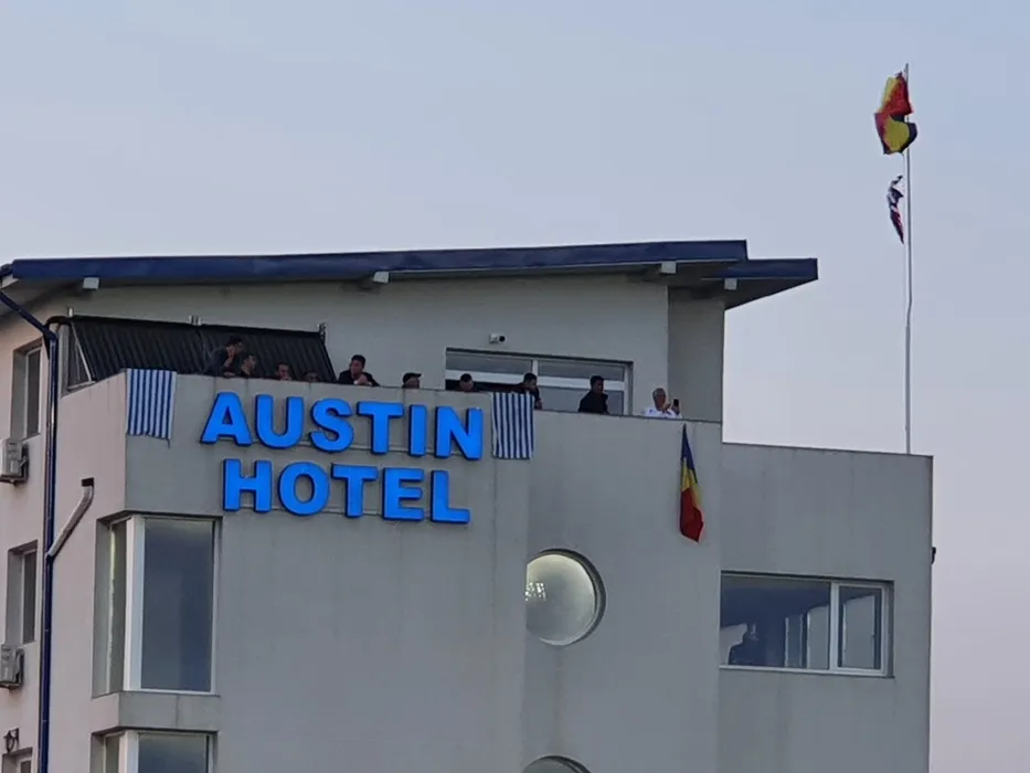 Fanii care nu au prins bilete la Farul – FCSB văd meciul de la balcoanele hotelului de lângă stadionul din Ovidiu! Imagini senzaționale