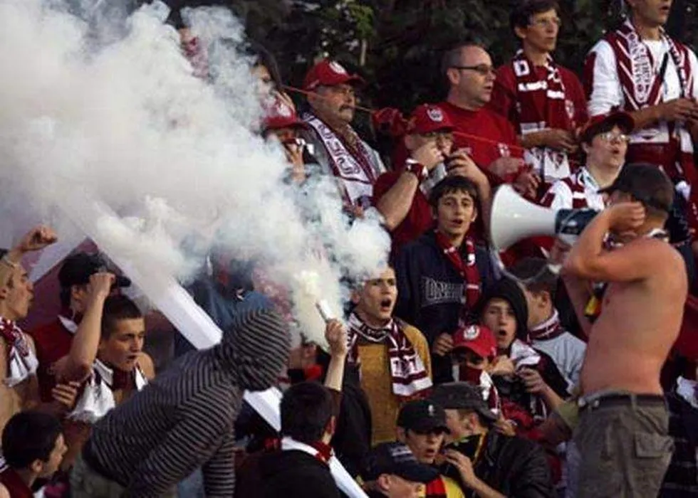 Suporteri CFR Cluj, in timpul meciului CFR Cluj - FC Timisoara, in Targu Jiu, sambata, 13 iunie 2009. Formatia CFR Cluj a castigat pentru a doua oara consecutiv Cupa Romaniei, dupa ce a invins echipa FC Timisoara, cu scorul de 3-0 (2-0), intr-o partida disputata pe stadionul "Municipal" din Targu Jiu. COSMIN DAN / MEDIAFAX FOTO