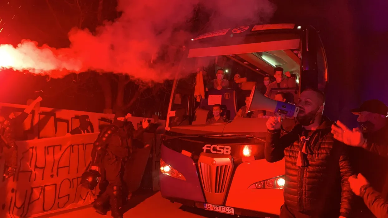 Fanii FCSB, atmosferă incendiară la plecarea autocarului! Cum au fost întâmpinate vedetele lui Gigi Becali înaintea derby-ului cu Dinamo! FOTO & VIDEO