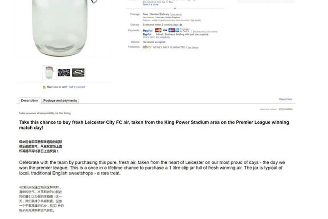 Fanii lui Leicester, campioni și în afaceri! :) Cu cât se vinde un borcan cu AER de la meciul care le-a adus titlul „vulpilor”