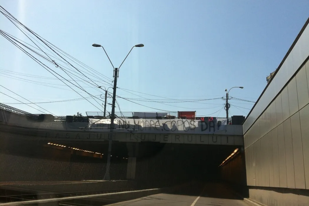 Fanii nu-l iartă pe Copos! FOTO Suporterii au afișat azi un banner amenințător la adresa patronului, la Pasajul Lujerului