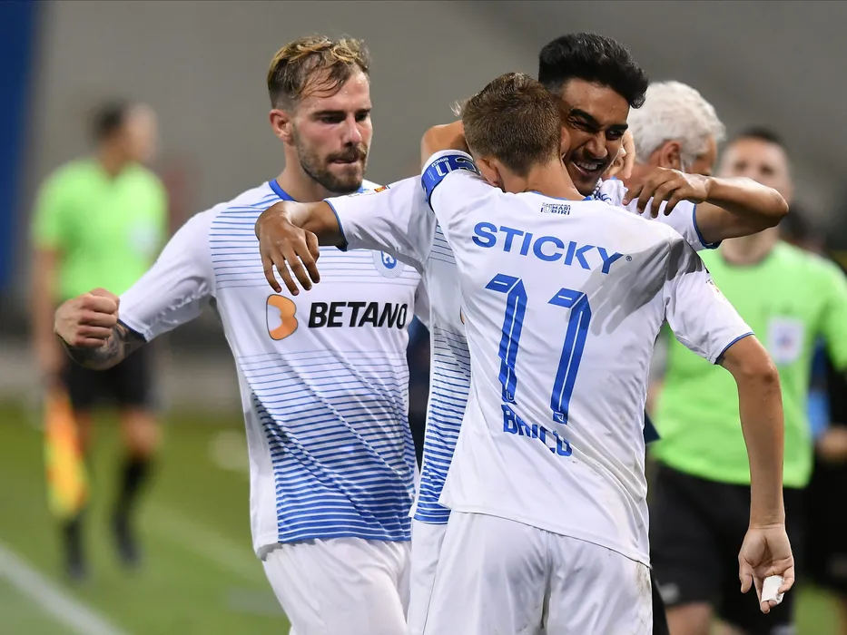 Mihai Balasa si Nicusor Bancu il felicita pe Stefan Baiaram dupa cursa si pasa decisiva de la al doilea gol al Craiovei in meciul de fotbal dintre Universitatea Craiova si Astra Giurgiu, contand pentru play-off-ul Ligii 1 Casa Pariurilor, disputat fara spectatori pe Stadionul Ion Oblemenco din Craiova, vineri 19 iunie 2020. © FOTO:Razvan Pasarica/SPORT PICTURES
