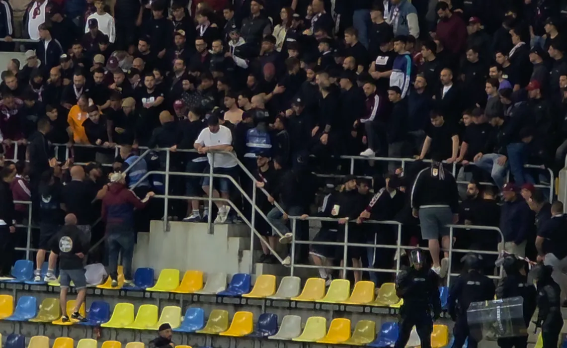 Fanii Rapidului s-au luat la bătaie între ei la derby-ul cu Dinamo. Jandarmii, chemați de urgență în peluză