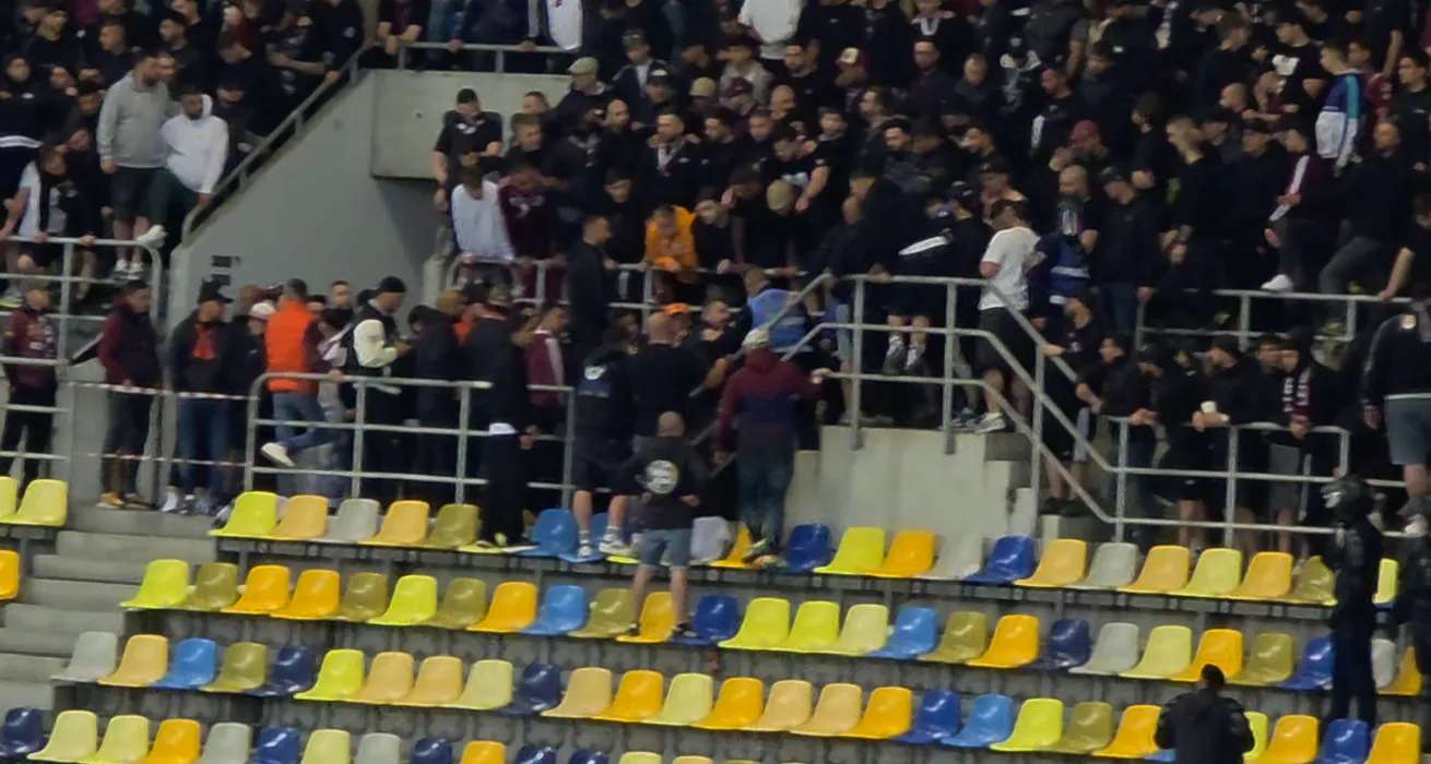 Fanii Rapidului s-au luat la bătaie între ei la derby-ul cu Dinamo. Jandarmii, chemați de urgență în peluză